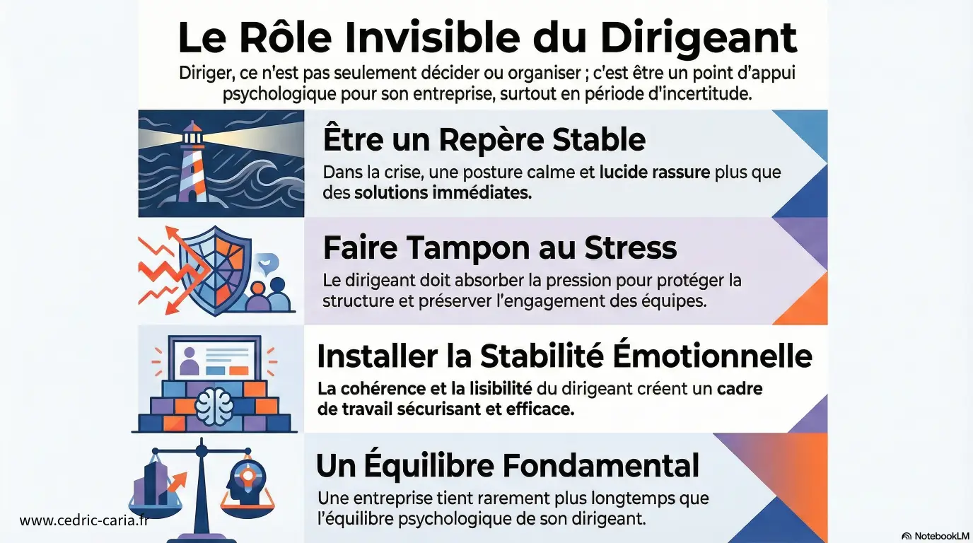Ce rôle psychologique est sans doute l’un des plus solitaires. Peu de dirigeants peuvent exprimer leurs doutes sans fragiliser leur position. Peu d’interlocuteurs comprennent réellement cette charge.